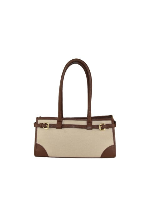 Borsa a spalla in kanvas e pelle, interamente realizzata in Italia. Elegante e pratica, combina la robustezza del canvas con dettagli in vera pelle per un look raffinato e contemporaneo. La chiusura superiore con zip protegge un interno spazioso e foderato, completo di tasche multifunzione. La linea morbida e la forma capiente la rendono perfetta per l’uso quotidiano. Disponibile nei colori marrone, cuoio, verde, nero e taupe, è ideale per completare con stile ogni outfit urbano.