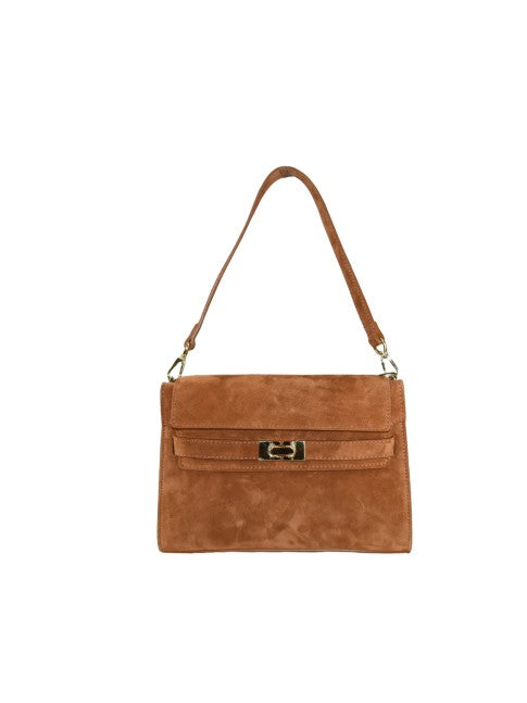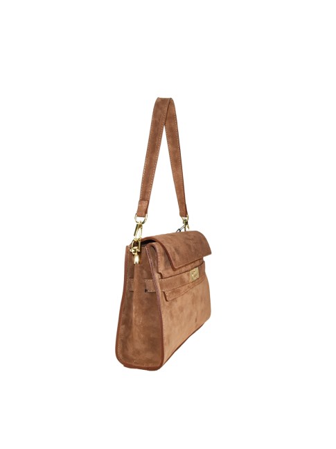 Raffinata borsa a spalla in morbida pelle scamosciata, realizzata con cura artigianale. Il design morbido e dalle linee sinuose valorizza la texture vellutata del camoscio, offrendo un look elegante e naturale. Dotata di manico ampio per una portabilità confortevole e chiusura superiore con zip, dispone di un interno spazioso con tasche funzionali. Perfetta per l’uso quotidiano o per completare outfit sofisticati, è disponibile in diverse tonalità moda.
